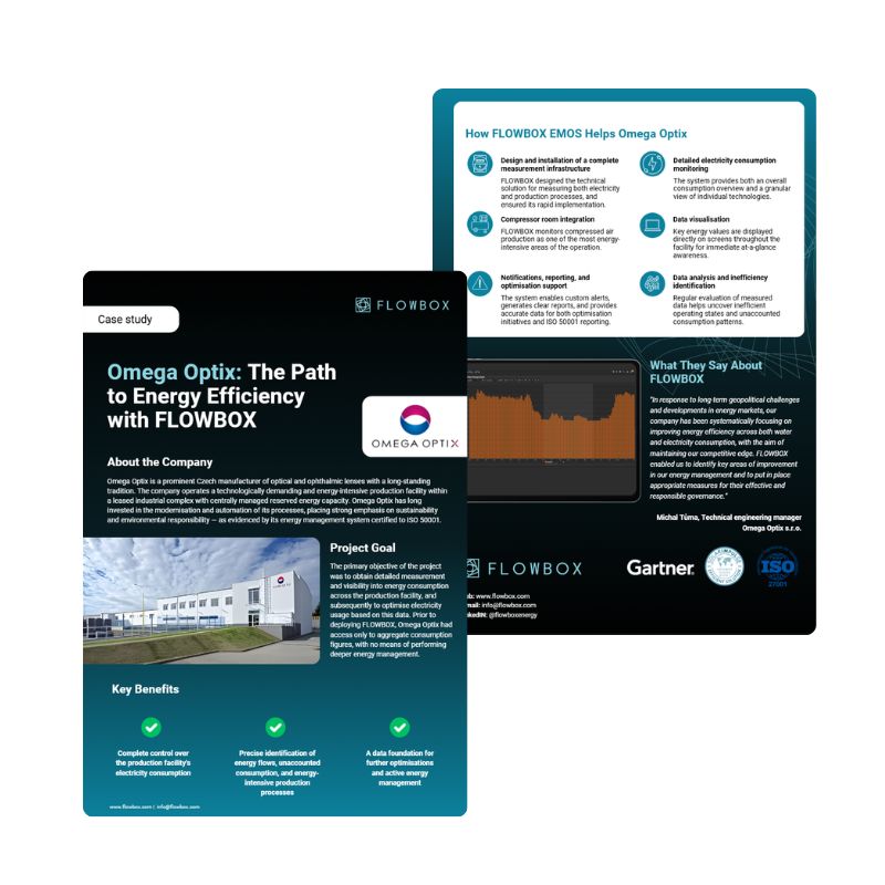 "In response to long-term geopolitical challenges and developments in energy markets, our company is systematically focused on improving energy efficiency across both water and electricity consumption in order to maintain our competitiveness. FLOWBOX has enabled us to identify key reserves in our energy management and put in place the right measures for their efficient and responsible control." Michal Tůma, Technical engineering manager Omega Optix s.r.o.