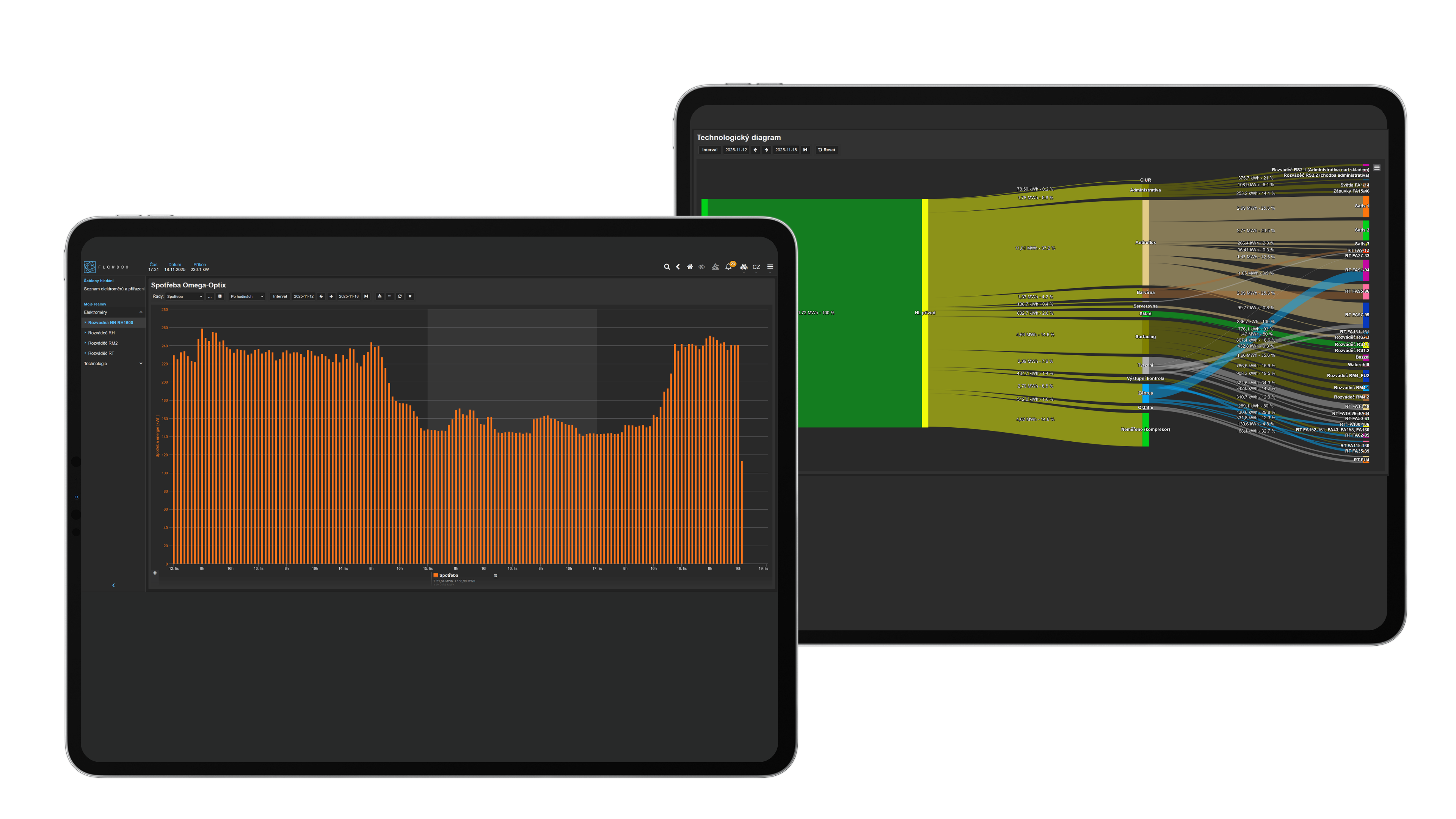 - Detailed electricity consumption monitoring — both a plant-wide overview and granular insight into individual technologies
